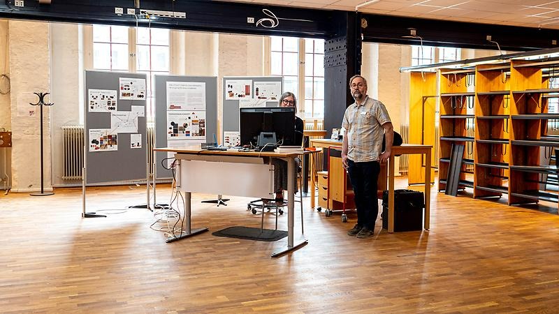 Själva informationsdisken är som synes fortfarande provisorisk och den nya kommer snart. På hyllorna som syns till höger på bilden kommer du snart att hitta kursböckerna. I närheten av informationsdisken kommer det att finnas ett par platser där du som behöver vägledning i till exempel referenshantering eller informationssökning kan sitta ner och få hjälp.